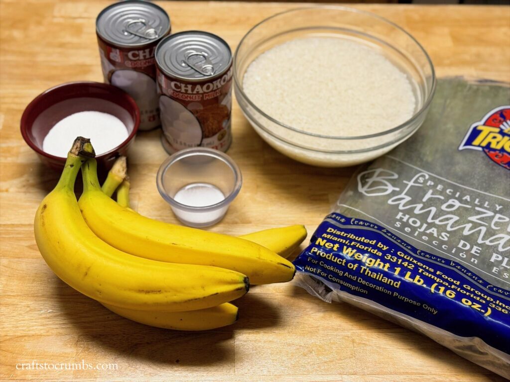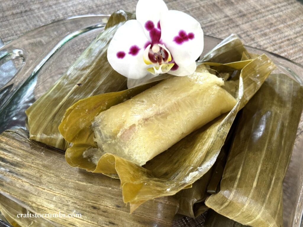 • Banana leaves – I used frozen banana leaves and they are less structured than fresh banana leaves, so it is more pliable and easier to fold. If you are using fresh banana leaves, you may need to toast them quickly over an open fire. Or as previously mentioned, we have used an iron to heat the banana leaves. Although banana leaves are preferred, if you don’t have access to banana leaves, it’s no problem. Use aluminum foil or even corn husks!