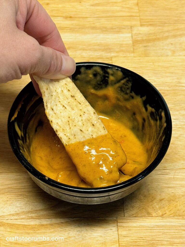 Optional Garnish – Since this is the nunya business chili queso dip, you don’t have to tell anyone how easy it was to make. If I was making this for a party, I’d might be inclined to garnish with a little bit of fresh diced tomatoes and/or shredded cheese just to make it appear like I put more effort into it.