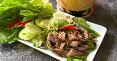 Khai ping, or baked eggs is a classic Lao dish that can be enjoyed as snack, protein in a main dish, or even street food. In this dish, the contents of the eggs are seasoned, poured back into the shell, and baked on very low temperatures for a couple of hours. More traditional versions are steamed, skewered and grilled, hence the name khai (egg) ping (grilled). You’ll find similar dishes throughout Southeast Asia and the eggs seasonings may vary. Sometimes they are served with a dipping sauce.