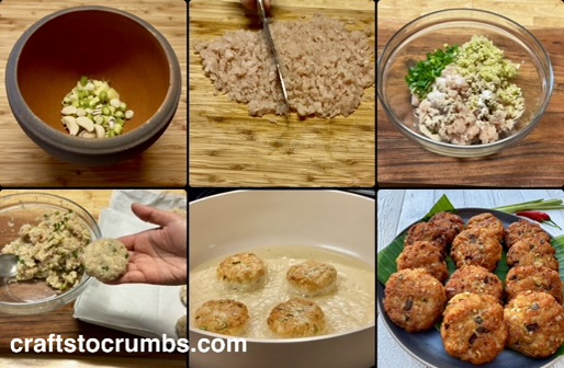 • Scoop a spoonful of the fish mixture and form about 1.5-inch balls and then flatten into patties.