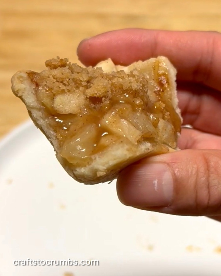 Streusel top preferred – this is my preferred topping for these mini pies because, firstly, you don’t have to worry about extra pie crust if you are using a store-bought pie crust which doesn’t have as much extra crust. Secondly, the flour mixture in the streusel top does a great job of soaking up the extra juices that you tend to get with the cooked apples. I also love that it adds a different texture to the pie that is not all crusts. These are small pies. Ask yourself how much you like crusts?