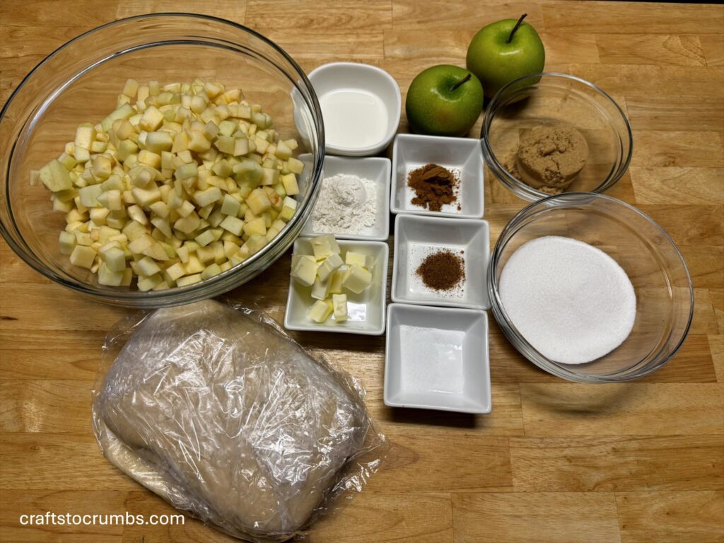 Sugar – For the filling, I used a mixture of both granulated and brown sugar for depth of flavor. You can use all (3/4 cup) granulated sugar and it will still work. The amount of sugar could be adjusted up to 1 cup depending on how tart the apples are.