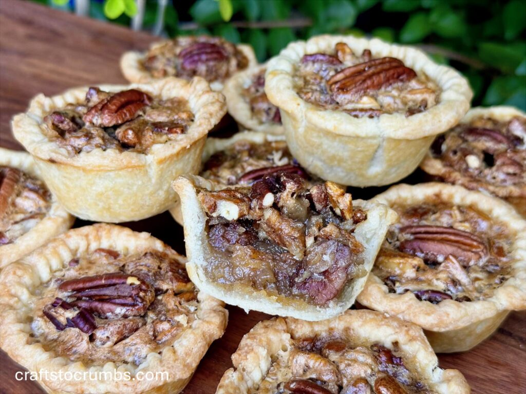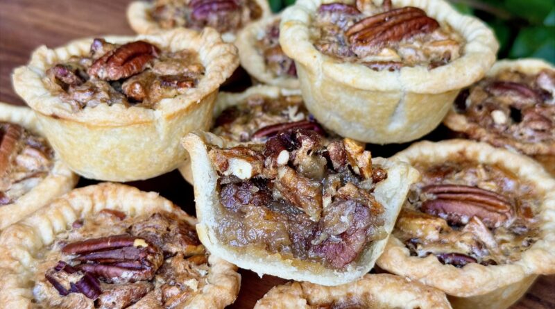 Pecan pie is one of my favorite pies. There’s something about that gooey filling coupled with the nuttiness. Although, pecan pie is traditionally made with corn syrup, this version does not. They bake up quickly. If using store bought pie crusts, they would be that much easier.