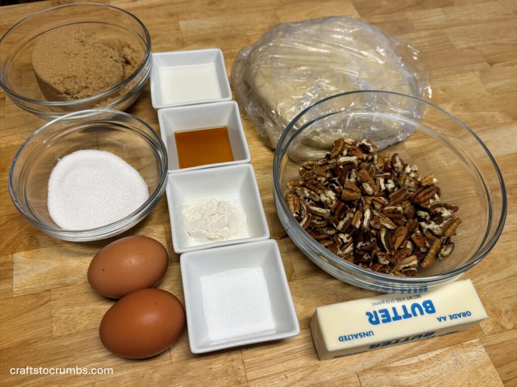 • Whisk in the milk, eggs, vanilla extract, and flour, making sure everything is well combined. Stir in the pecan pieces. Set the filling aside.