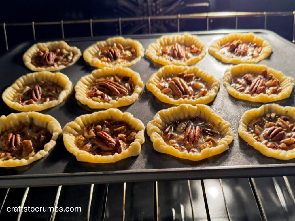 Cook time – cook time may vary depending on oven, pans, or even crust. Check to make sure the crust is golden brown and a crack has formed on the top of the pie. Try not to overbake the pies or you’ll lose the gooey center.