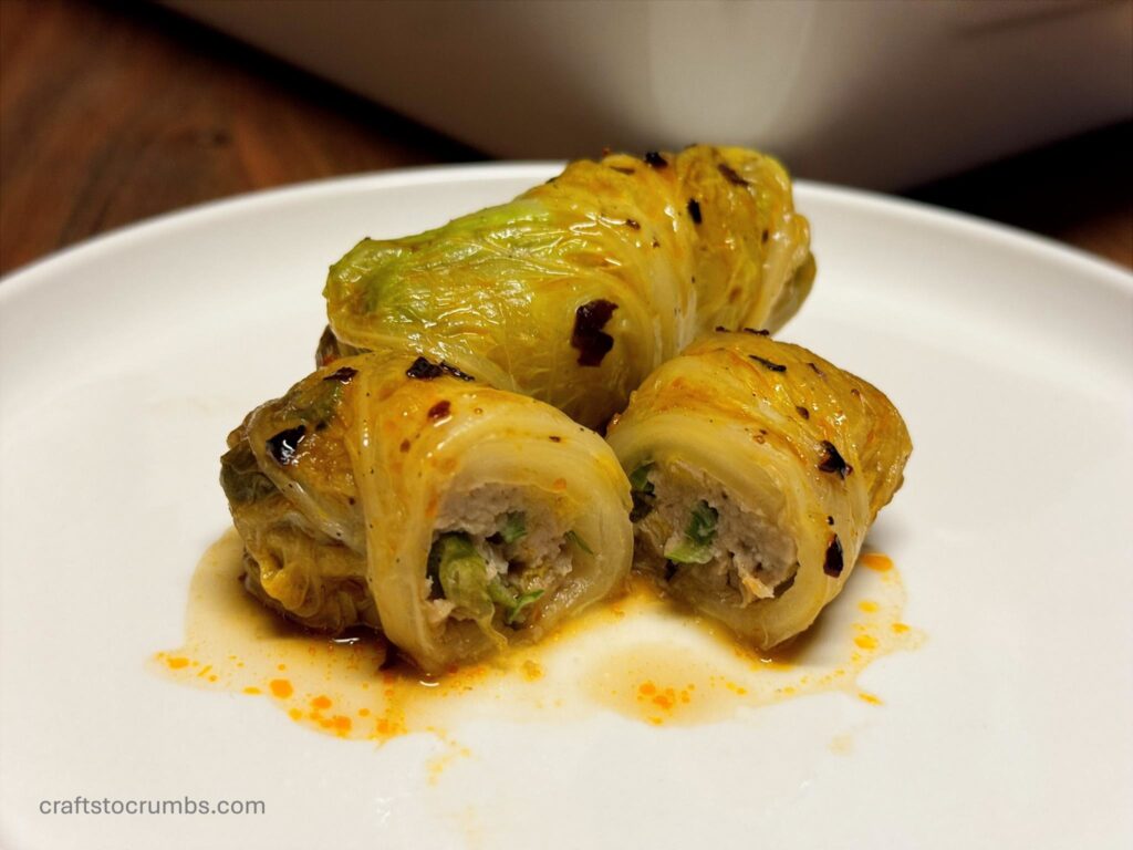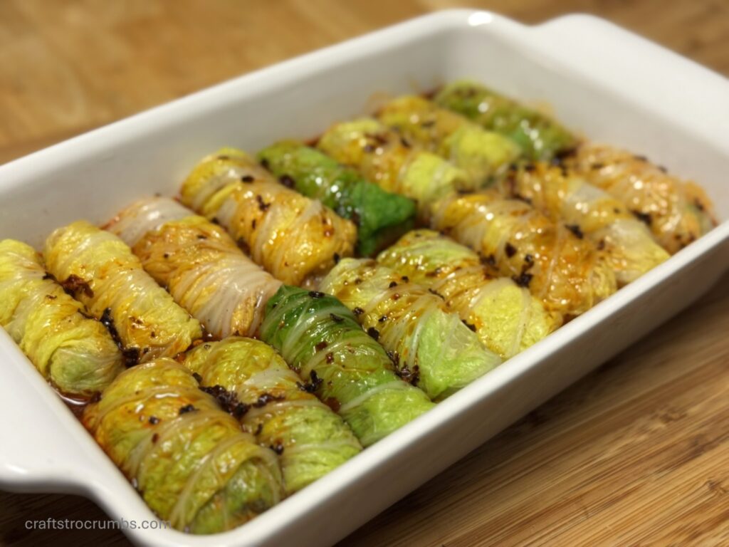 For this recipe, I wanted a lower carb option for pork and cabbage dumplings which I enjoy from time to time. This is a pork and cabbage dumpling made and baked in the sauce, so it soaks up all that flavor. For a veggie lover who also loves dumplings, this was a no brainer for me. These cabbage rolls are so delectable, and with slightly less guilt, I could eat half of them in one sitting.